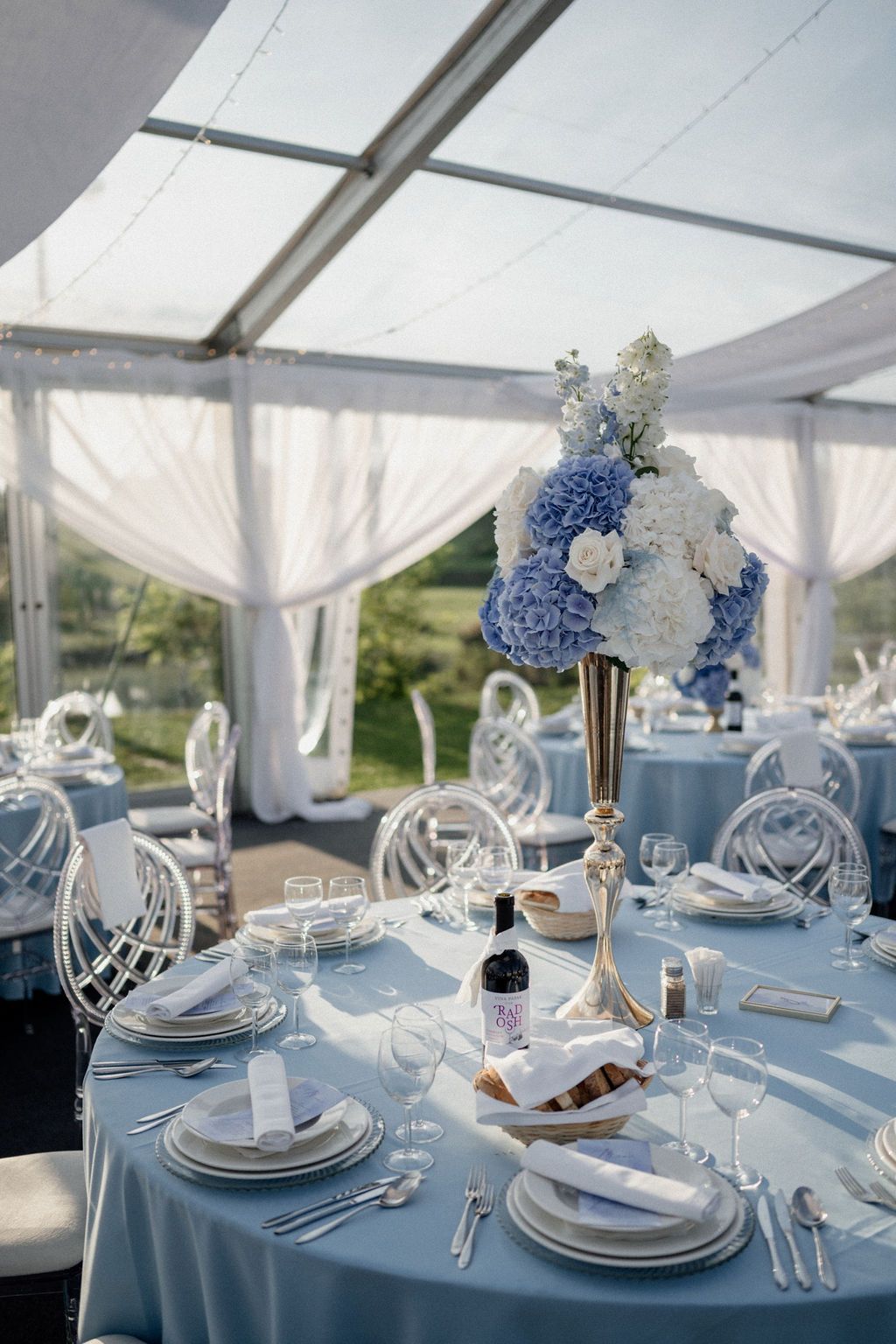 Lokacija: Raven breg Fotograf: Best man studio Dizajn vjenčanja: Little Bi Wedding Stil vjenčanja: Glamurozno Cvijeće za vjenčanje: bijele ruže, svijetlo plave hortenzije, bijele hortenzije, delfinijum